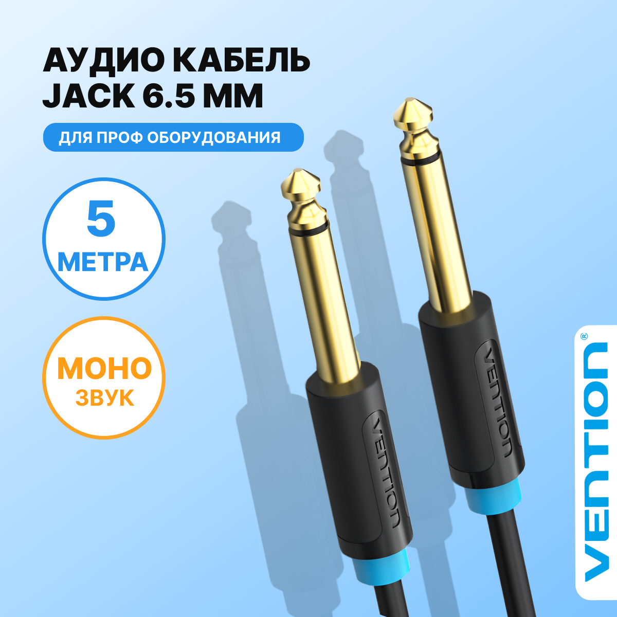 Кабель акустический Vention BAABJ Jack 6,5 mm M/6.5 M, 5 м
