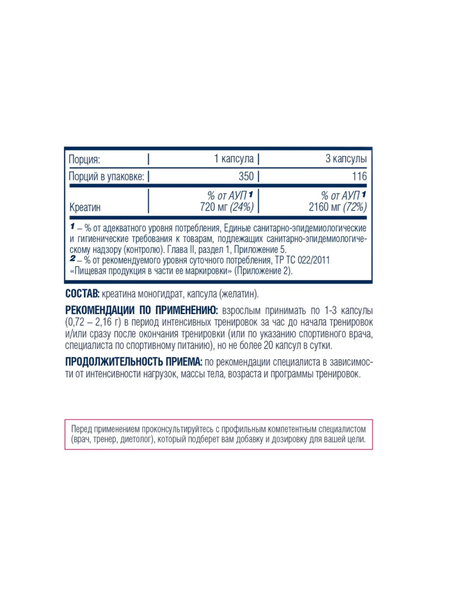 Креатин моногидрат Be First Creatine Monohydrate Capsules (креатин моногидрат) 350 капсул