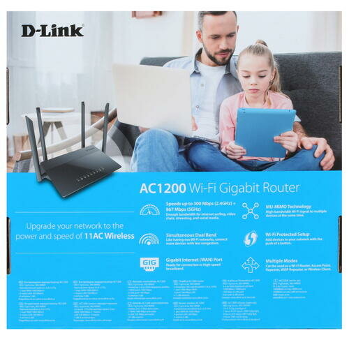 D-Link Dir-841/ru/a1b Беспроводной двухдиапазонный маршрутизатор AC1200 Wave 2 с гигабитным WAN-порт .