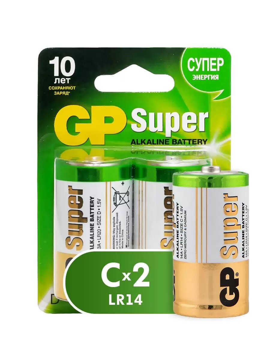 Батарейки GP Super, С (LR14, 14А), алкалиновые, комплект 2 шт., блистер, 14A-2CR2