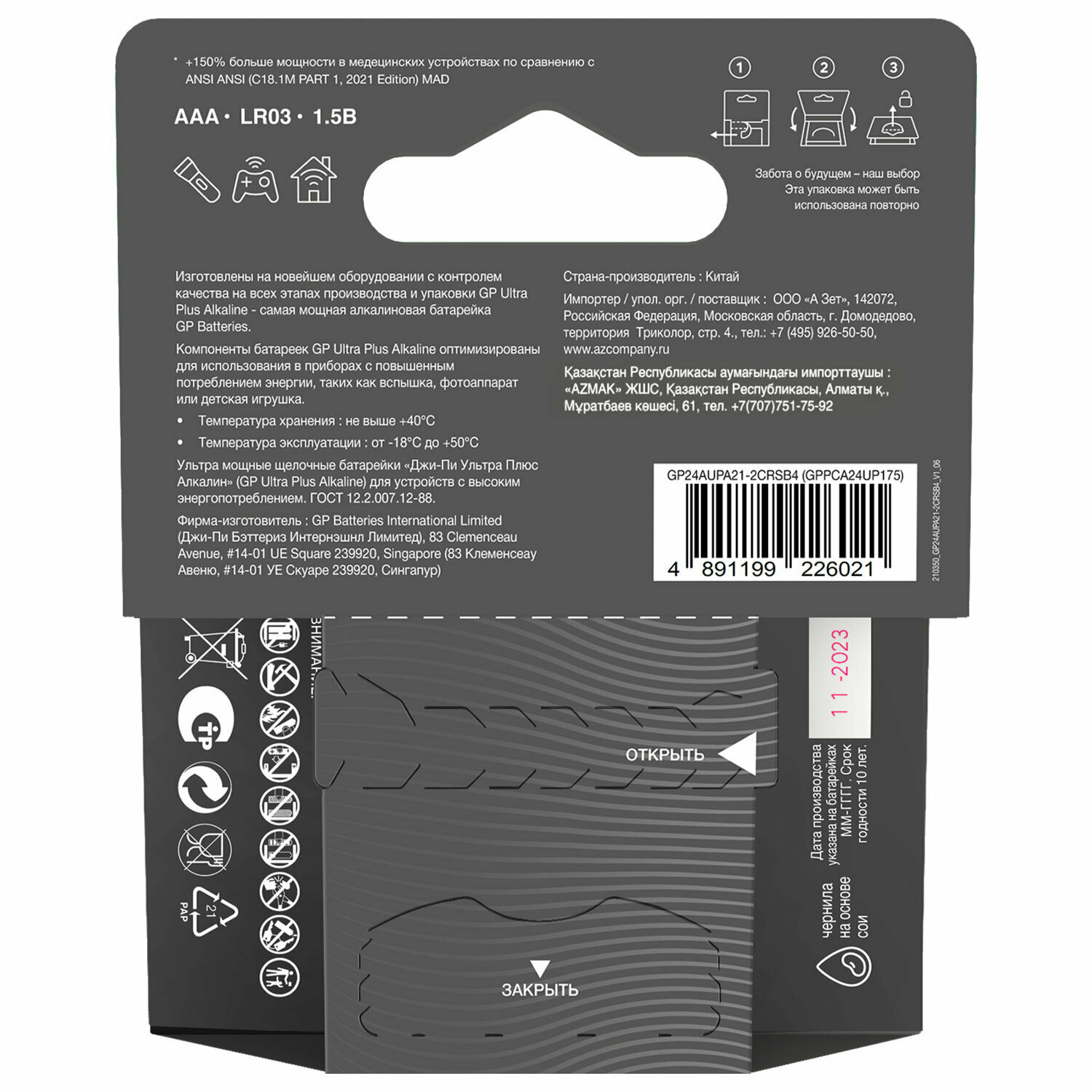 GP AAA (LR03) Ultra Plus+ | 1,5 Вольта Щелочные (алкалиновые) батарейки - 4шт.
