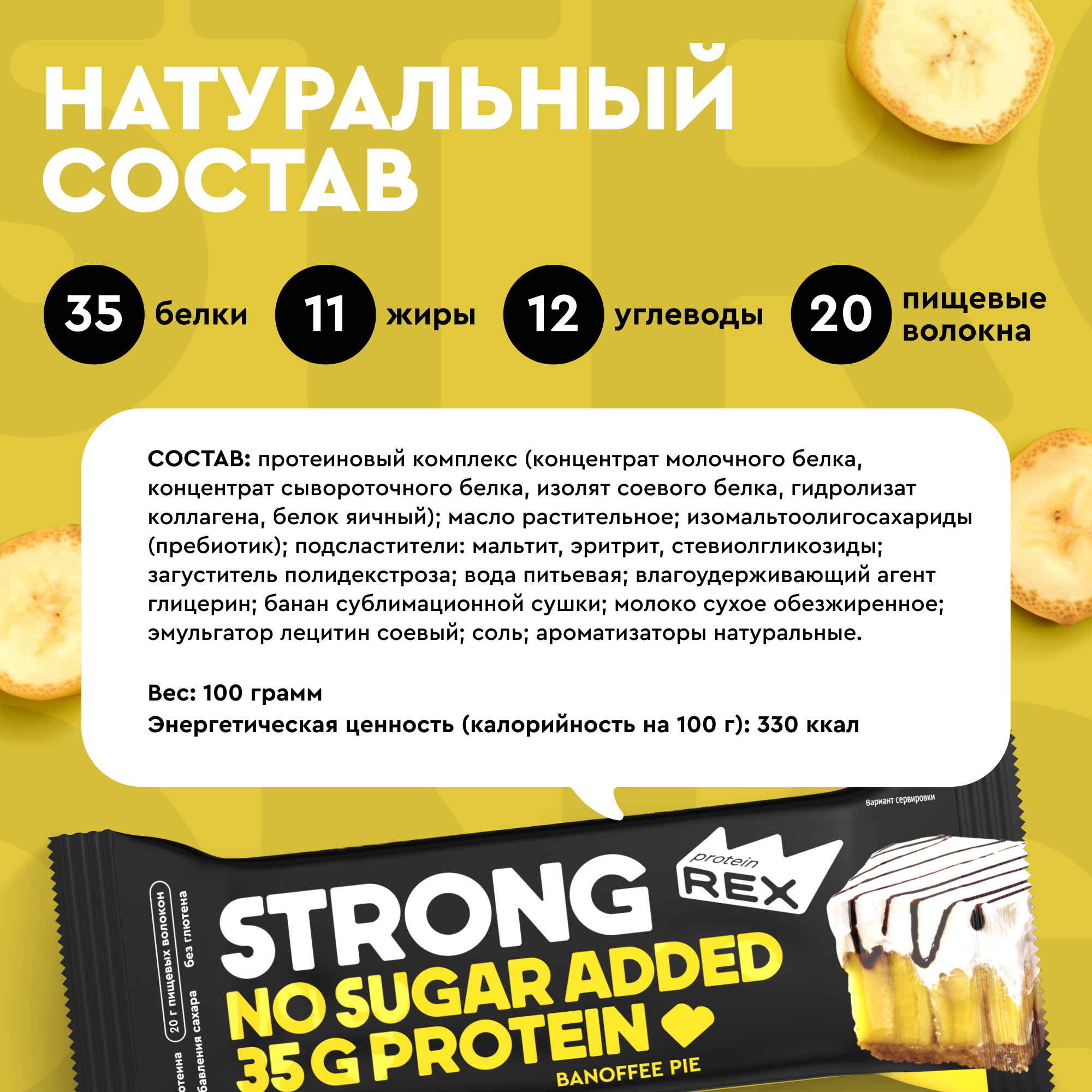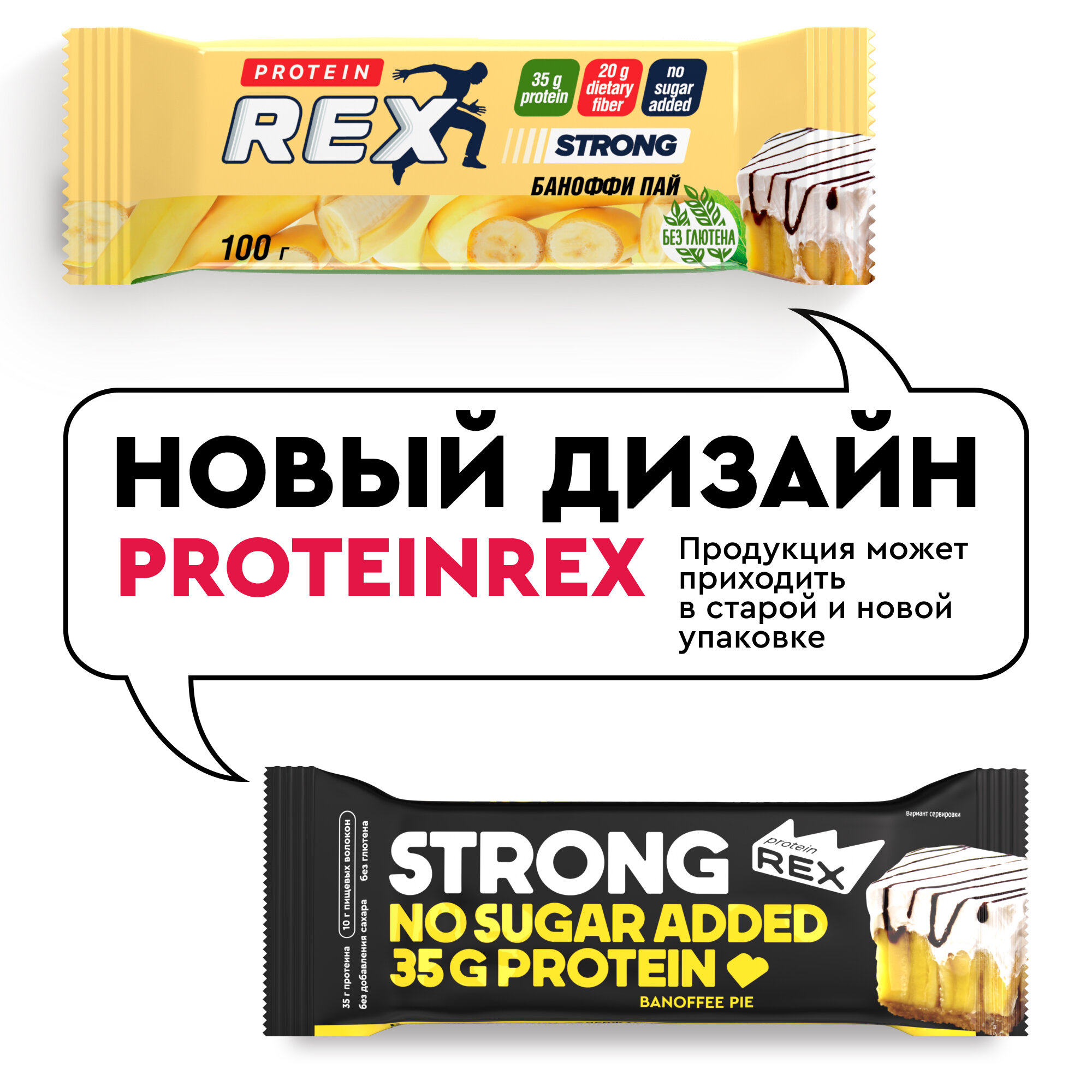 Протеиновые батончики ProteinRex STRONG Баннофи пай, 12 шт х 100 г, 330 ккал с высоким содержанием протеина, ПП еда, спортивные батончики без сахара