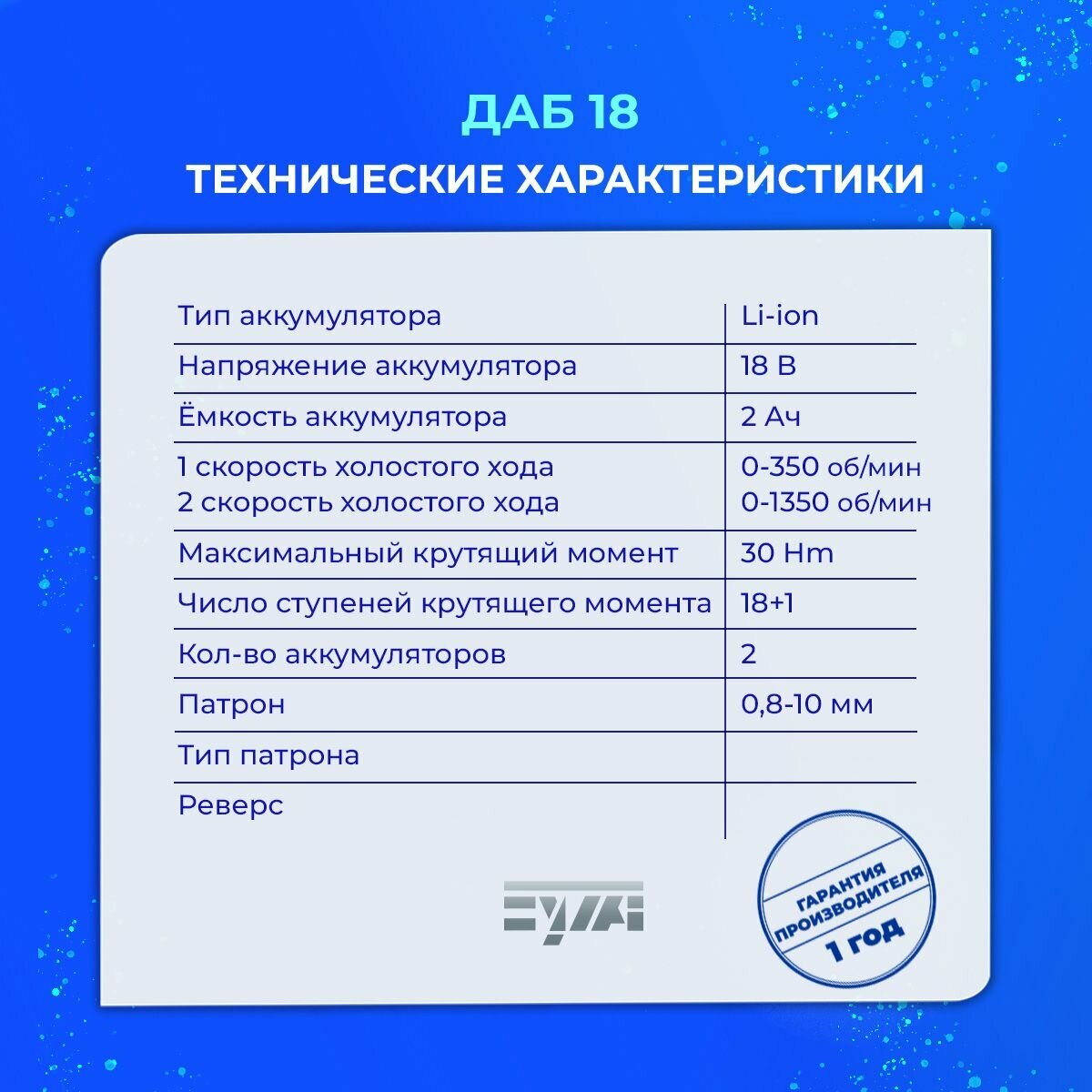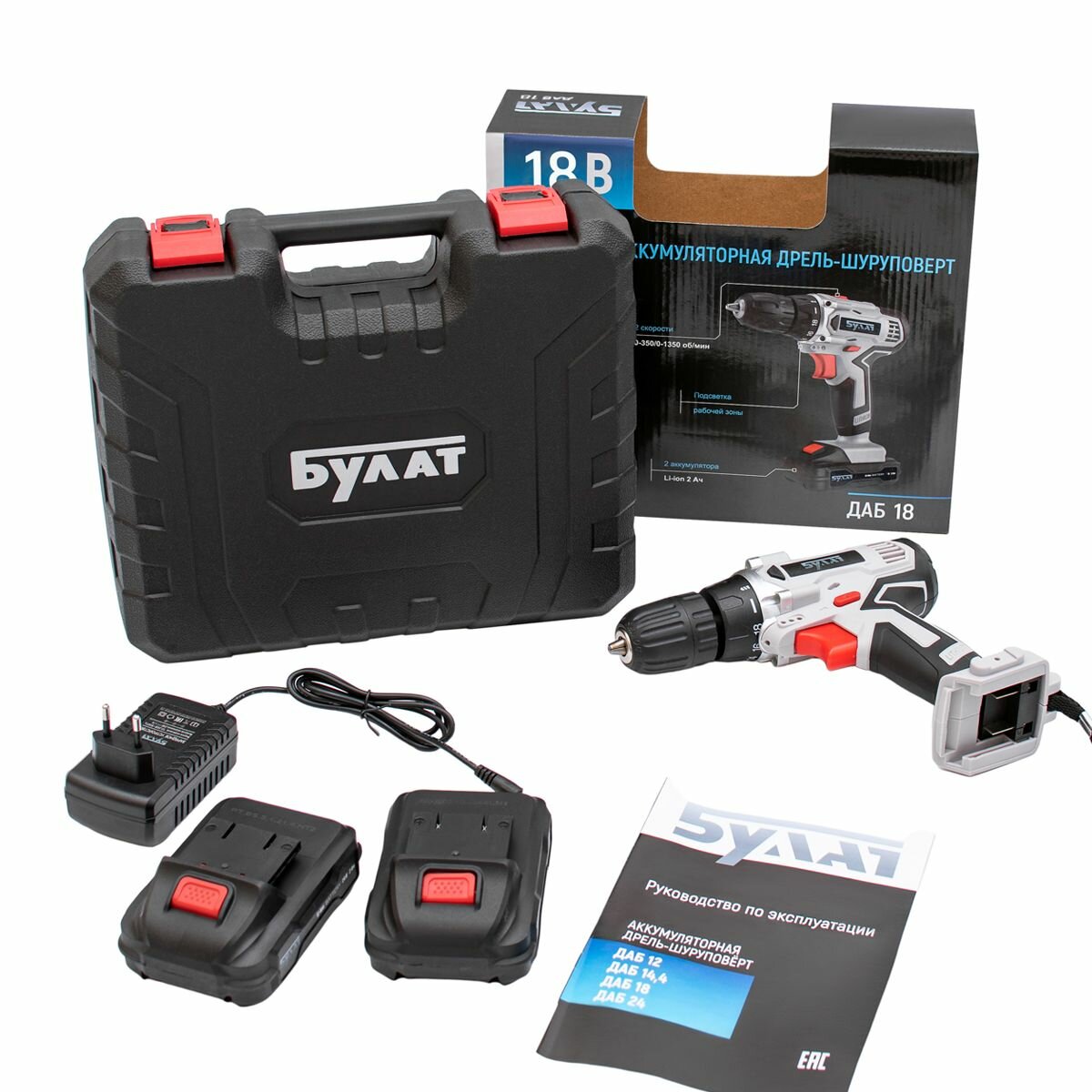 Аккумуляторный шуруповерт Булат ДАБ 18 (18В, 2*2Ач, 30Нм)