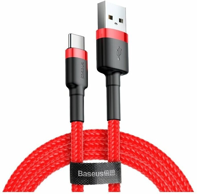 Кабель Baseus Cafule USB A/USB C, 3 А, 1 метр, черный/красный