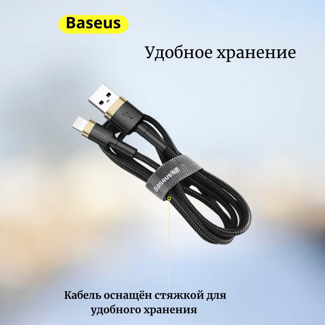СохранитьКабель для айфон USB BASEUS Cafule USB - Lightning, 2А, 10W, 3 м, черный+золотой интересное: