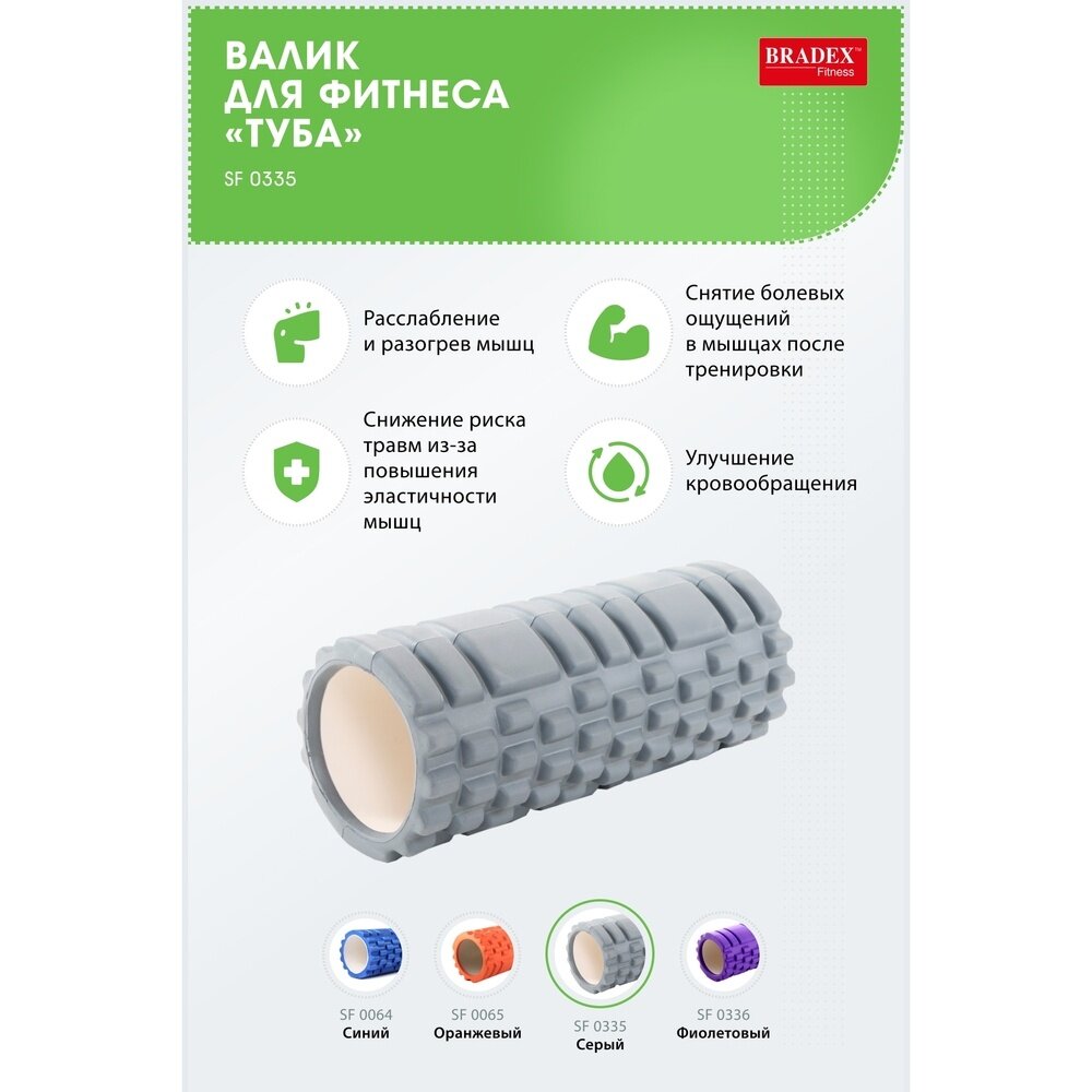 Валик для фитнеса Bradex туба массажный, серый (33x14 см)