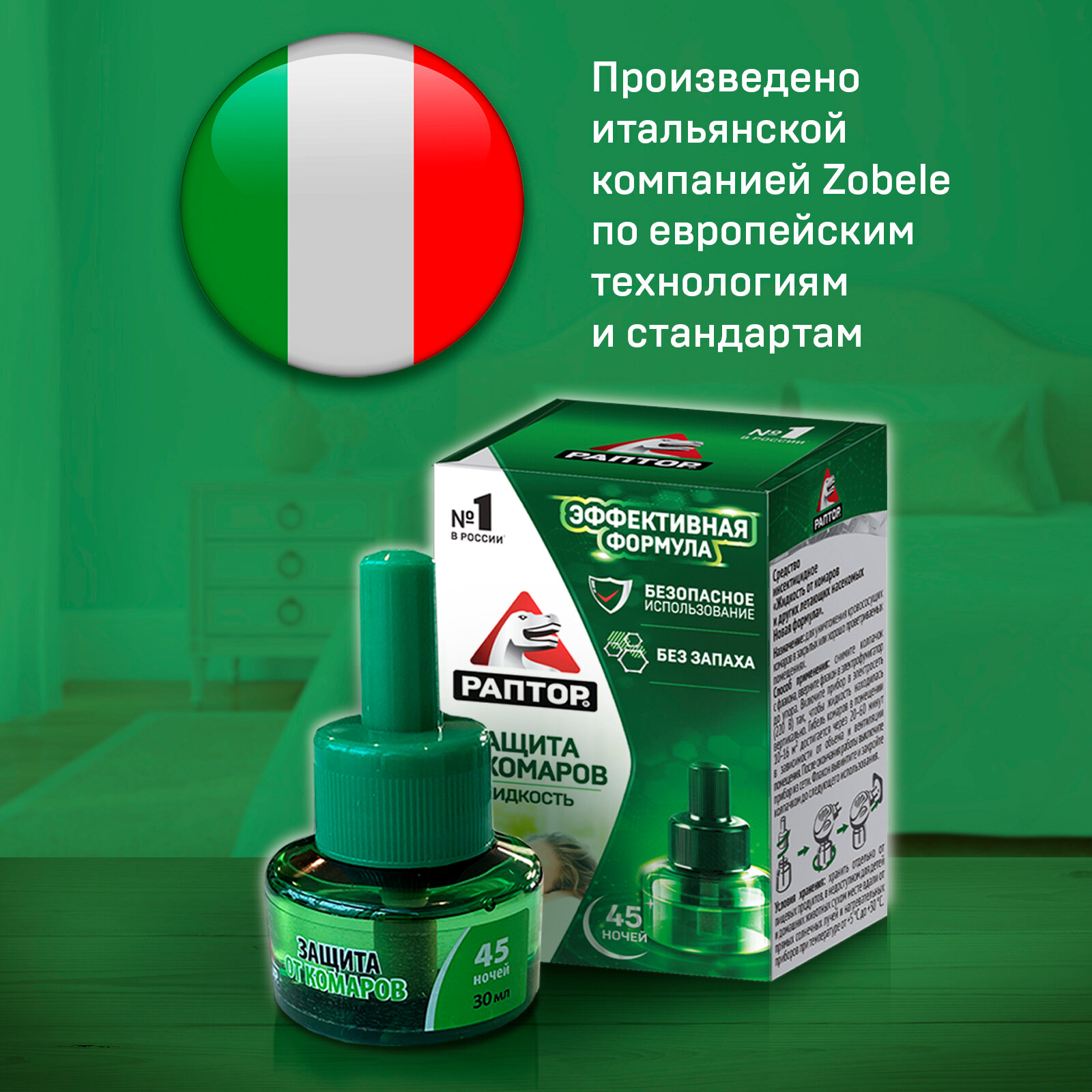 Жидкость от комаров Раптор, без запаха, 45 ночей
