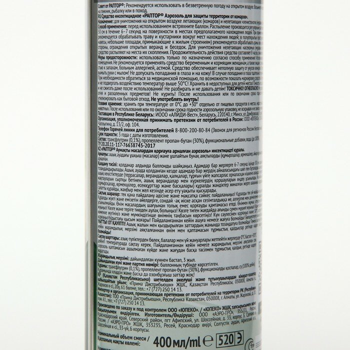 Раптор Аэрозоль для защиты територрии от комаров 400мл
