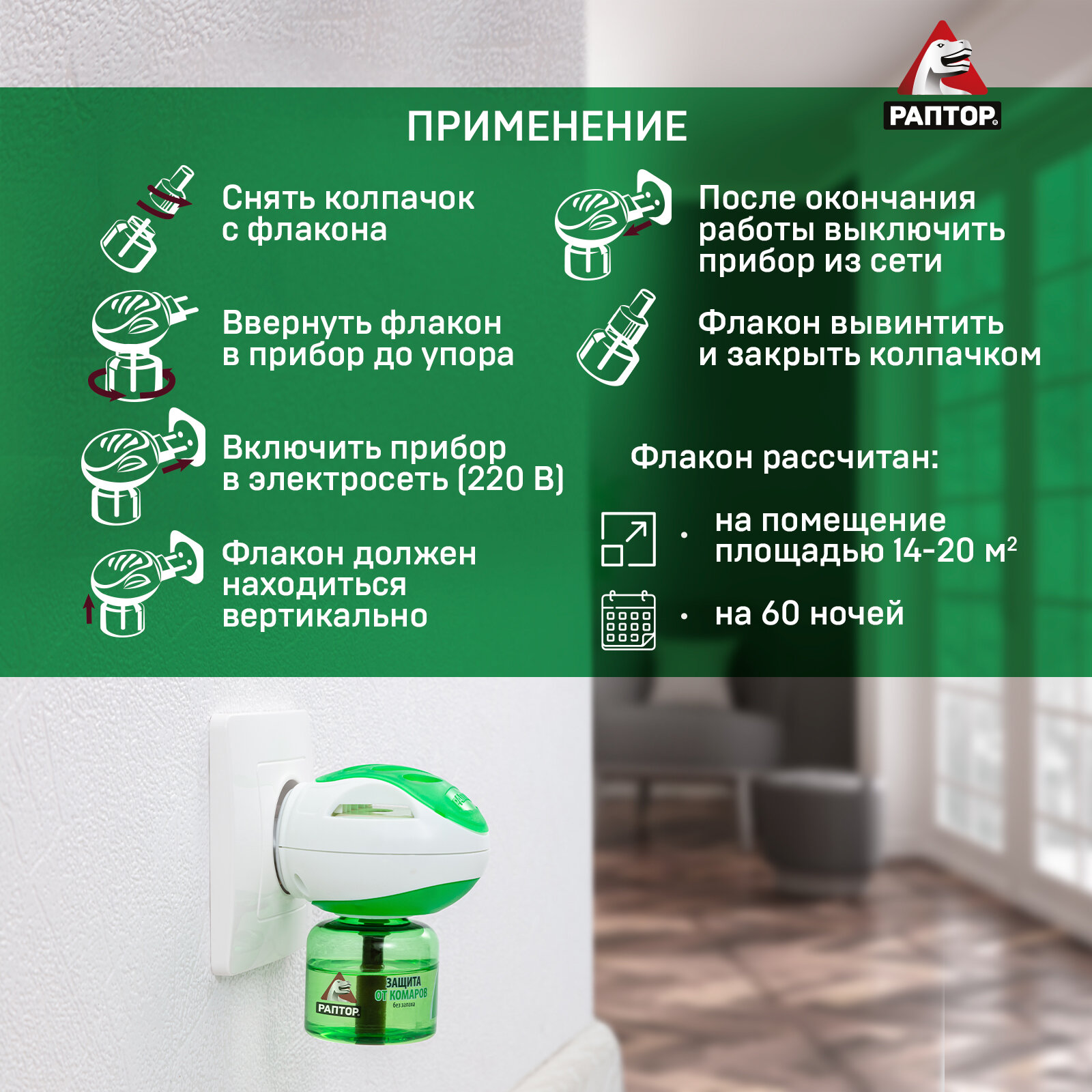 Раптор Жидкость от комаров, средство для фумигатора 60 ночей