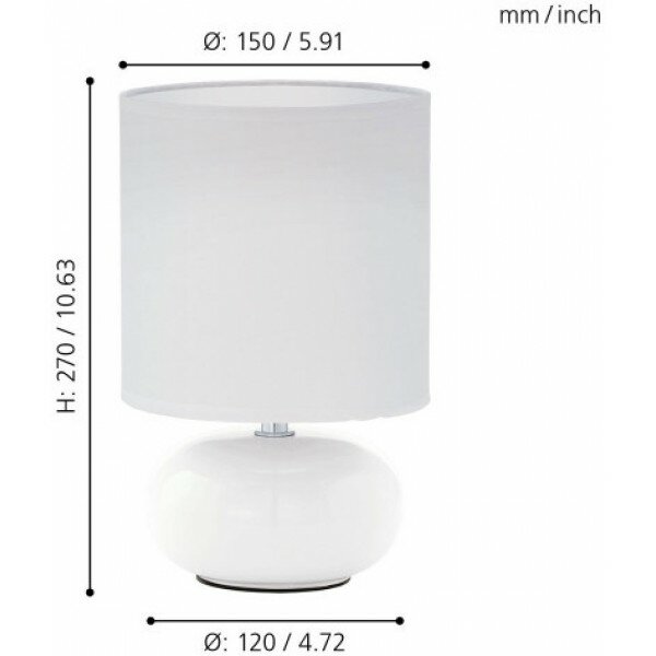 Настольная лампа TRONDIO, 1х40W (E14), Ø150, H270, осн. Ø120, керамика, белый/текстиль, белый