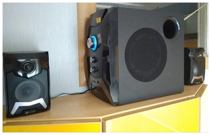 Акустическая система класс! Хотела брать фирмы Logitech или Oklik(неизвестный бренд). Logitech за такую же цену лишь как колонки, а эта система просто супер и радио, и блютус, и колонки, и флэшка воспринимает. Звук громкий.