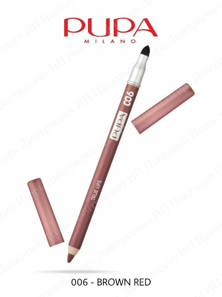 Pupa True Lips Карандаш для губ с аппликатором для растушевки №006 brown red (коричнево-красный)