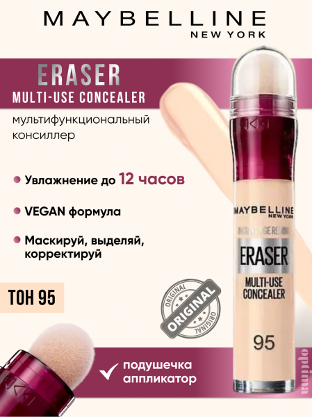 Maybelline New York Консилер для лица и глаз INSTANT ERASER, 95 Фарфоровый, мультифункциональный, 6.8 мл