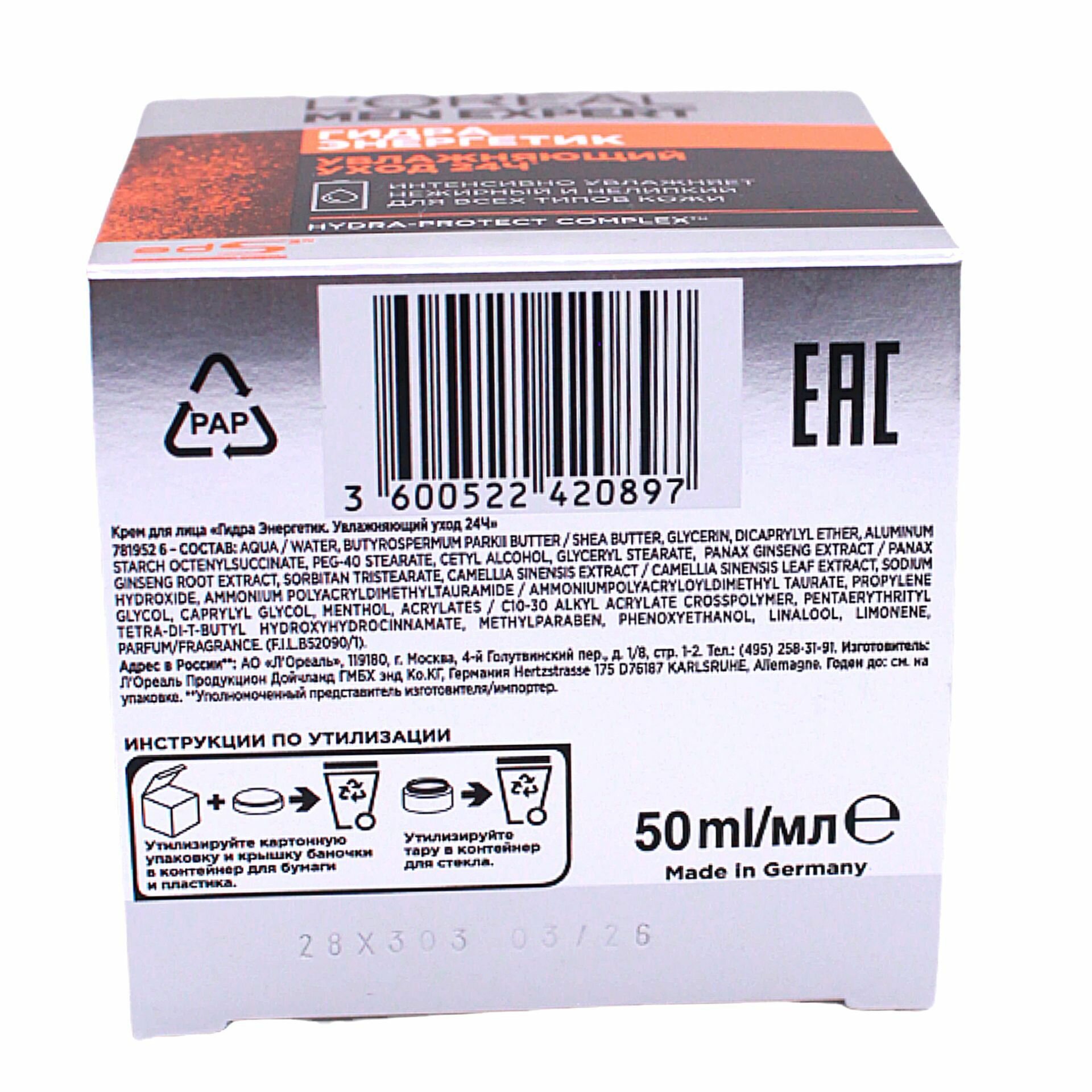 L'Oreal Paris Men Expert Гидра Энергетик Крем для лица "Увлажняющий уход 24ч", мужской, для всех типов кожи, 50 мл