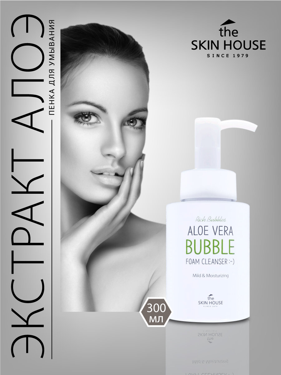 Пенка для умывания С экстрактом алоэ THE SKIN HOUSE ALOE VERA BUBBLE FOAM CLEANSER 300МЛ