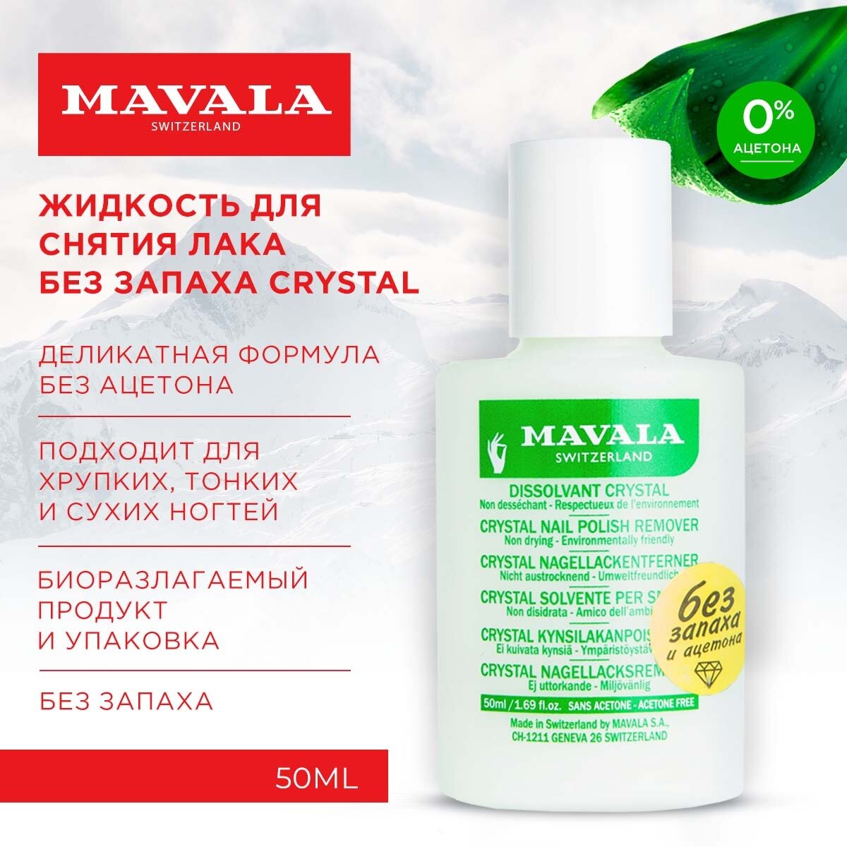 Жидкость для снятия лака без запаха / Crystal 50 мл (mavala)