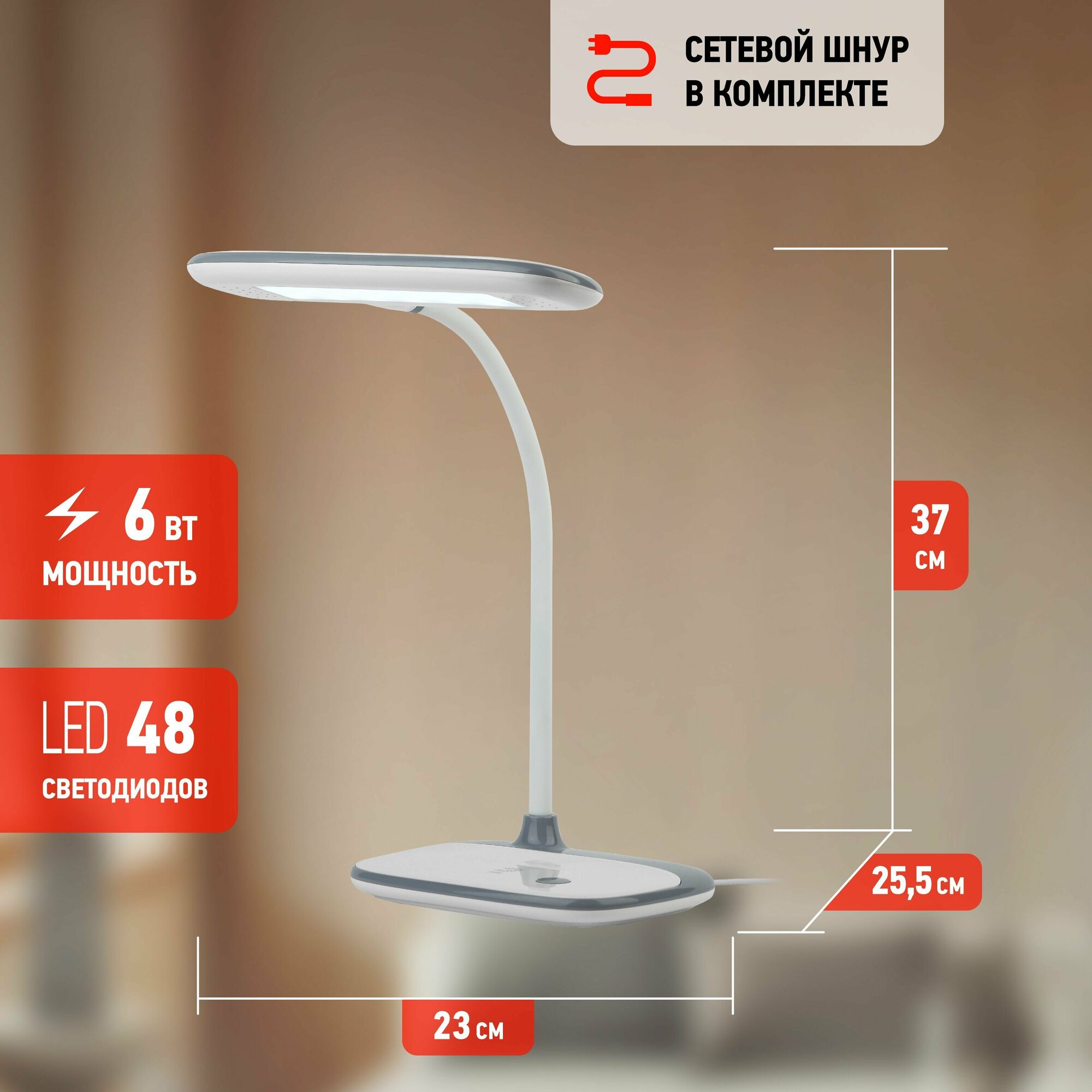 Офисная настольная лампа светодиодная с диммером и выключателем регулировкой цветовой температуры и яркости NLED-458-6W-W (ЭРА)
