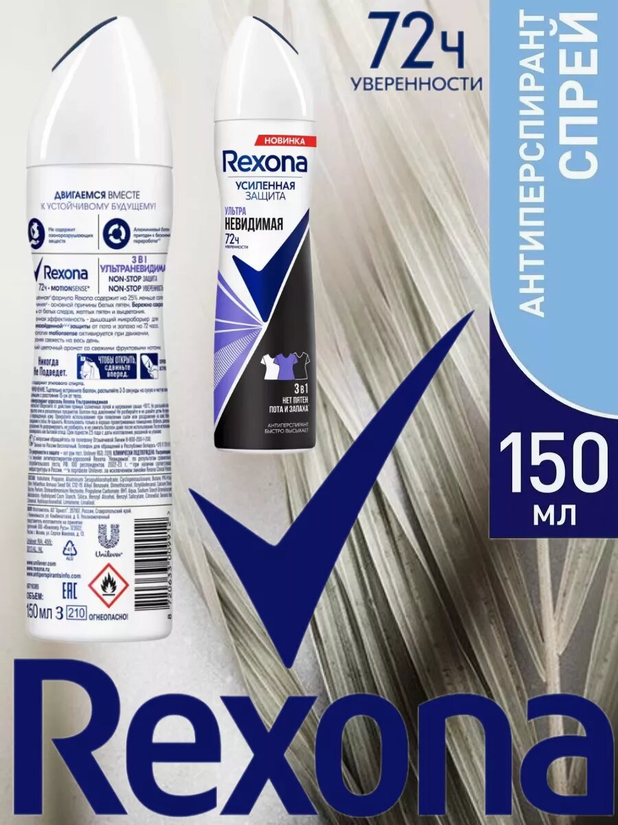 Rexona Антиперспирант MotionSense Невидимая Прозрачный кристалл, спрей, 150 мл