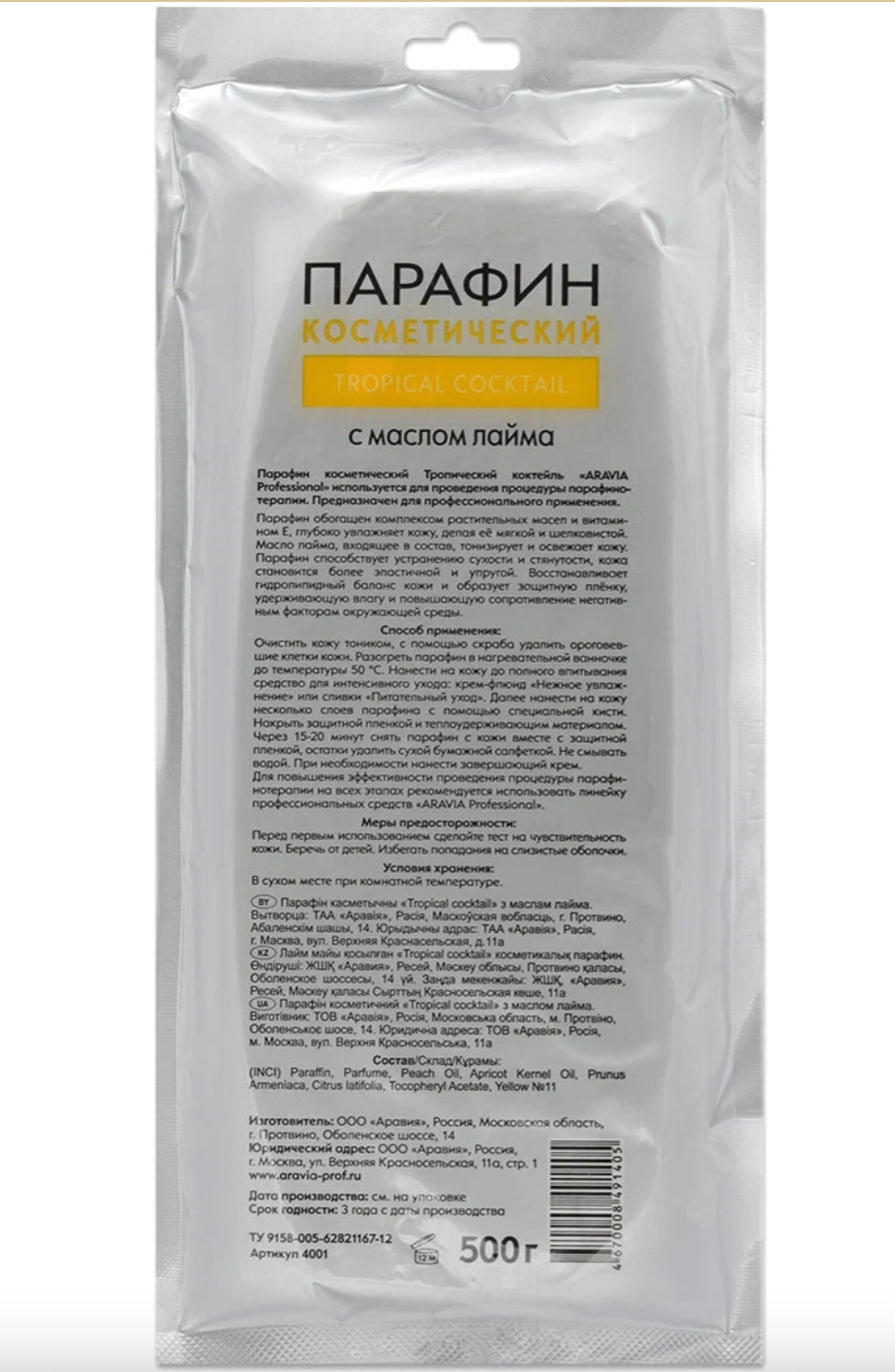 Купить Aravia Professional - Аравия Профешинал Парафин косметический "Тропический коктейль" с маслом лайма, 500 г -