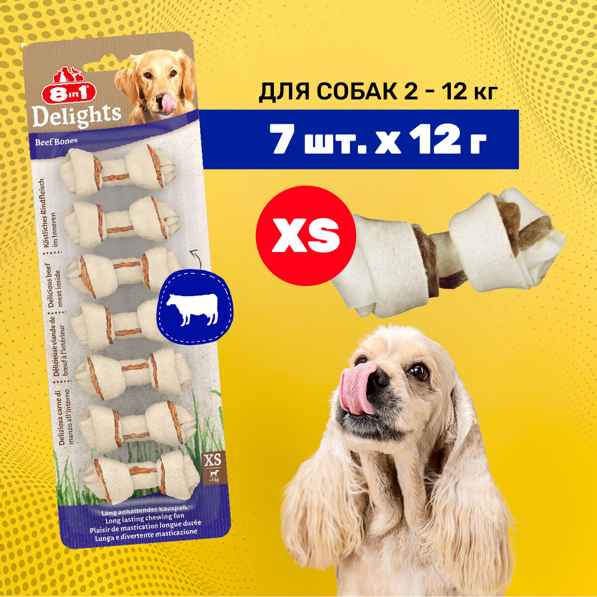 8in1 Лакомство для собак Delights Beef Косточки XS / 7.5 см / 7 шт. х 12 г