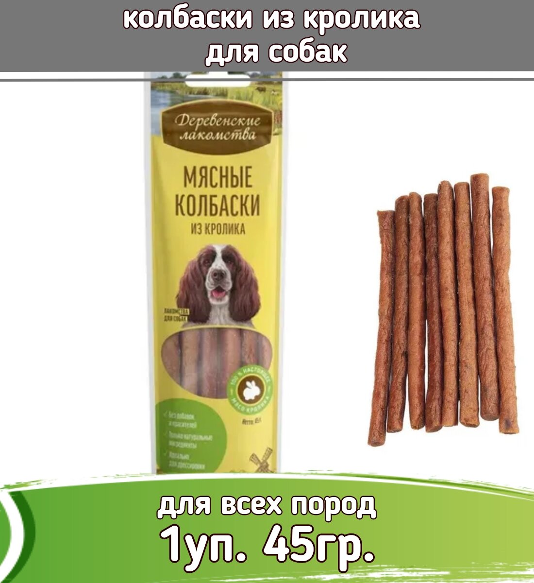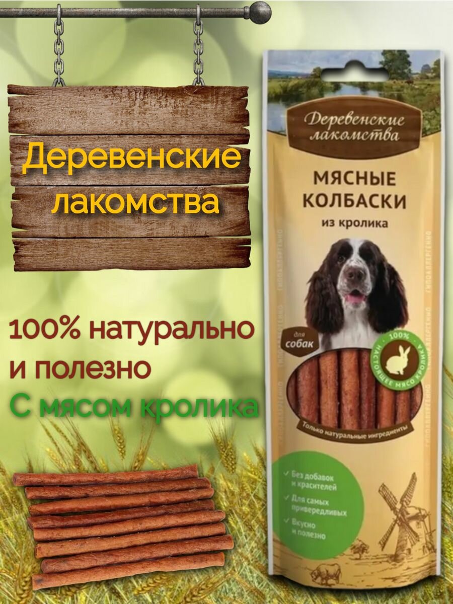 Деревенские лакомства Мясные колбаски из кролика лакомство для собак 10х45 г