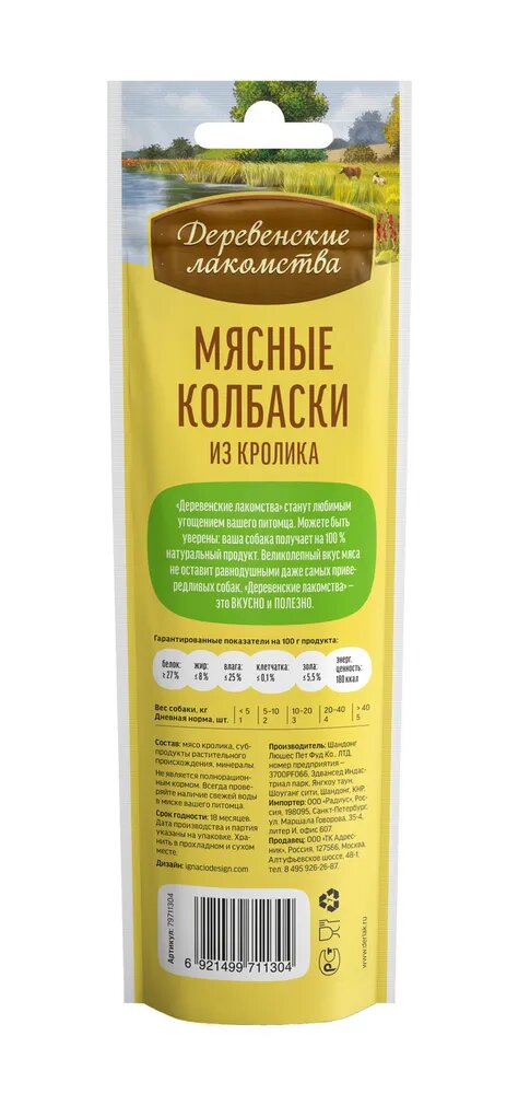 Деревенские лакомства 45 г мясные колбаски из кролика для собак 7 шт