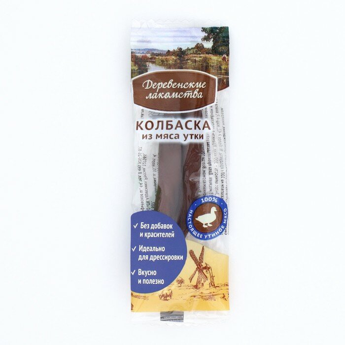 СохранитьДеревенские лакомства Мини колбаски для собак из мяса утки, 1 шт., 8г 0.008 кг интересное: