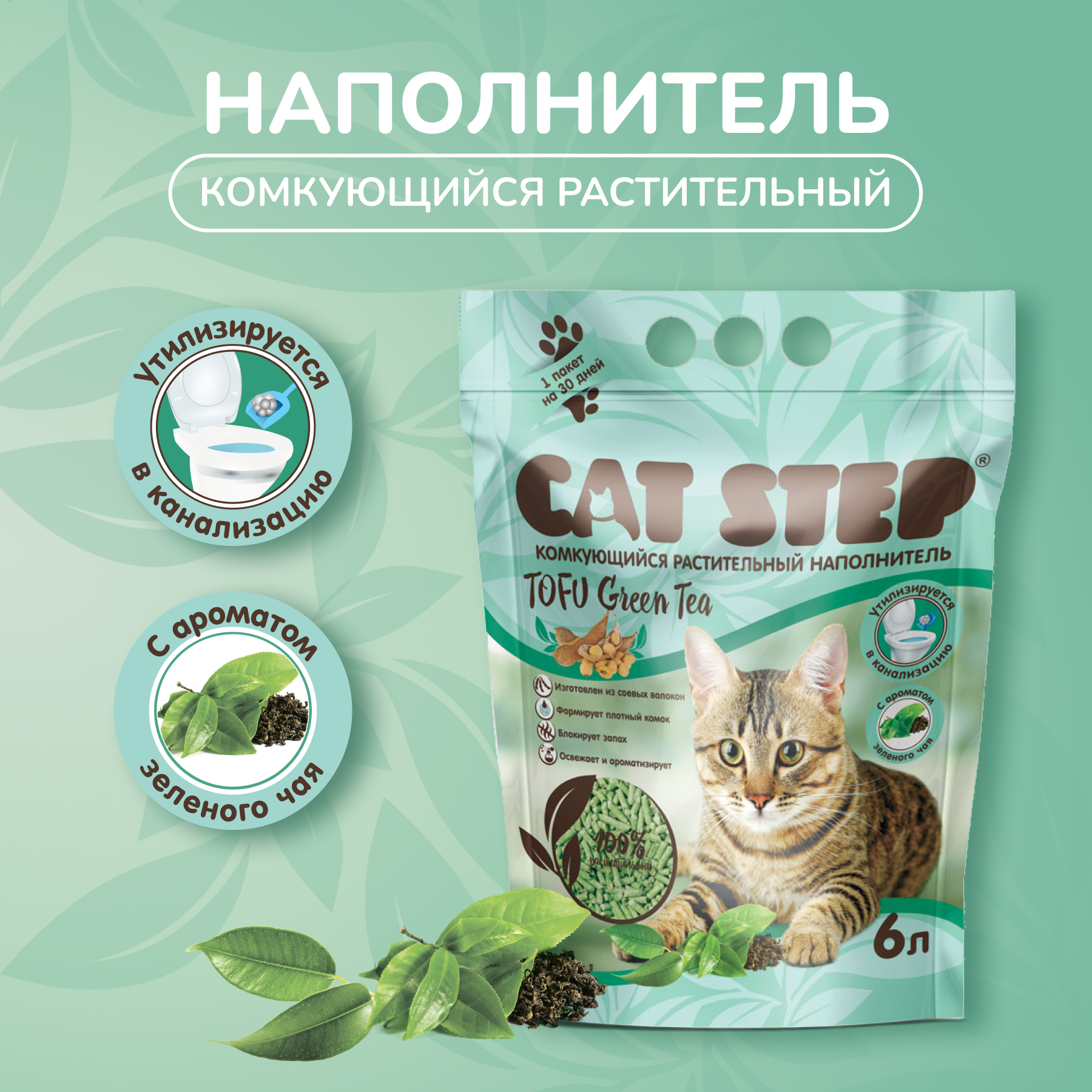 Cat Step Tofu Green Tea наполнитель для кошачьих туалетов растительный комкующийся - 6 л