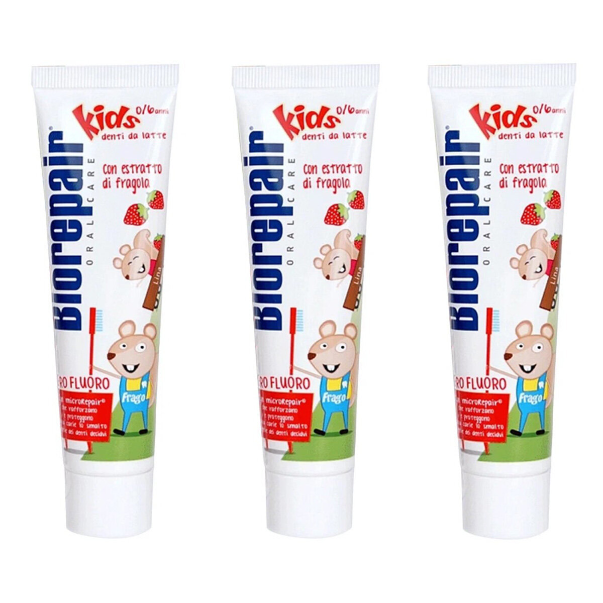 Зубная паста Biorepair Kids (0-6 лет) со вкусом земляники 50 мл, набор 3 шт