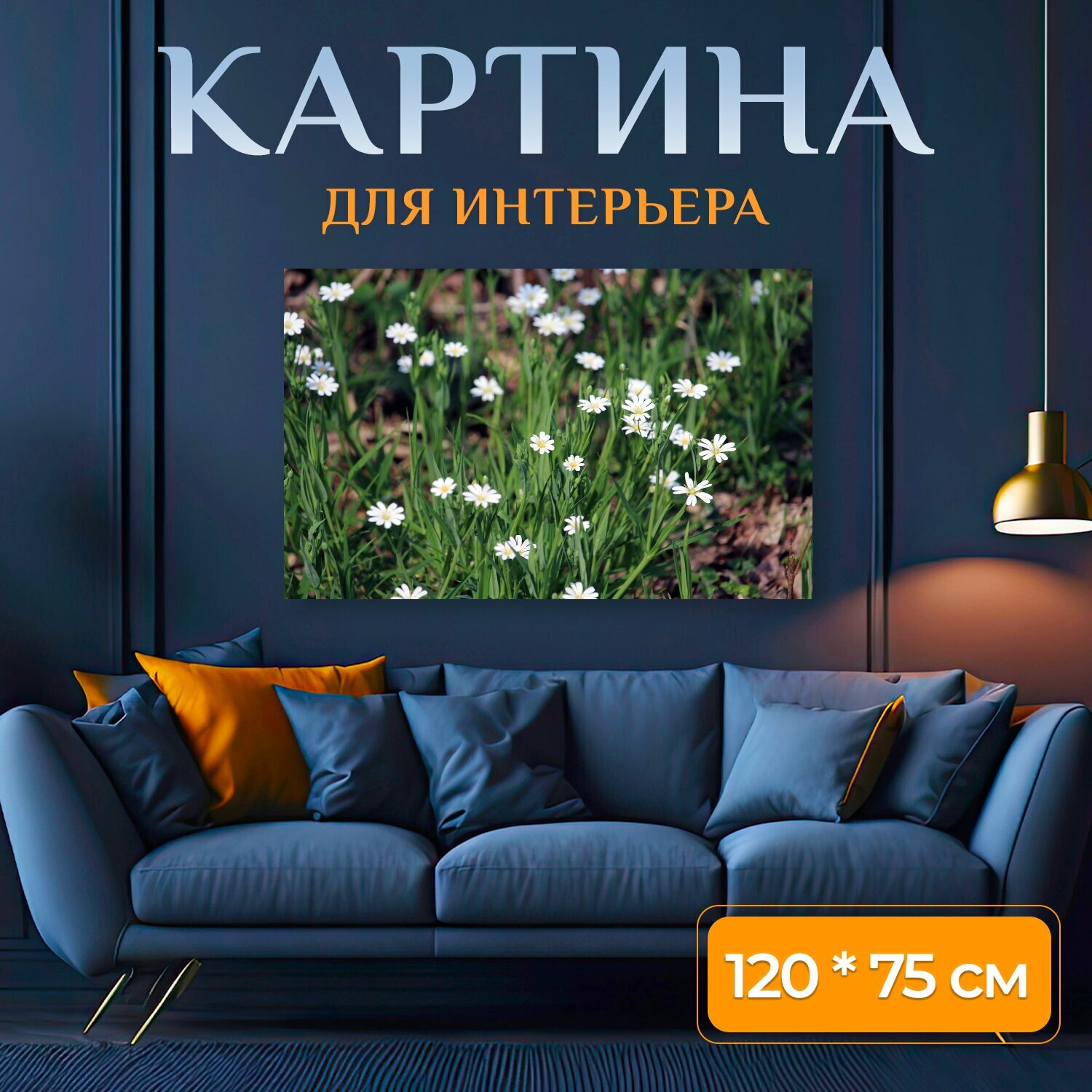 Картина на холсте "Белые цветы, травы, цветок" на подрамнике 120х75 см. для интерьера интересное: