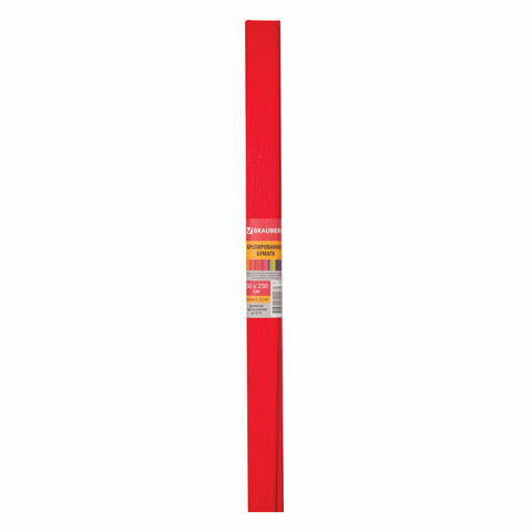 Бумага цветная крепированная Brauberg, 50x250см, плотная, растяжение до 45%, 32 г/кв.м, красная, в рулоне, 1 лист (126531)