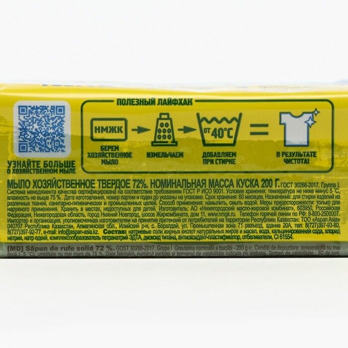 Мыло хозяйственное нмжк 72% Против пятен 200 г (хоз 72%)