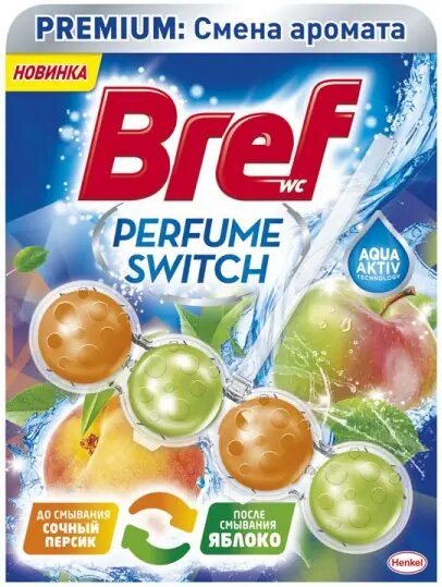 Бреф Туалетный блок Perfume Switch Сочный персик и Яблоко, 2*50 г, 1 уп