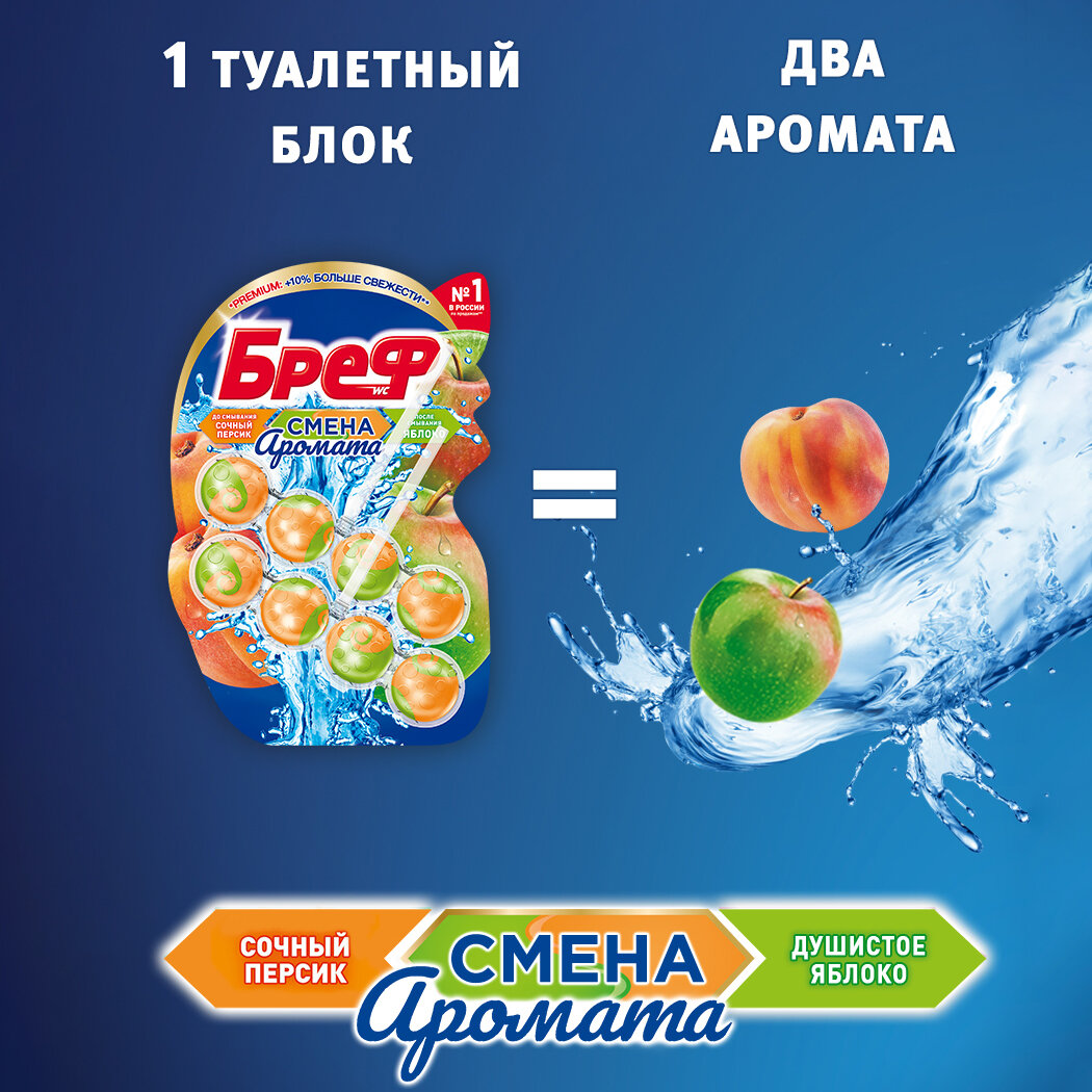 Бреф Туалетный блок Perfume Switch Сочный персик и Яблоко, 3 блока по 50 г, 1 уп.