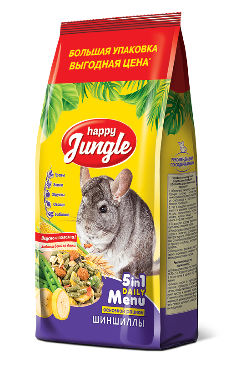 Корм для шиншилл Happy Jungle 5 in 1 Daily Menu Основной рацион , 900 г