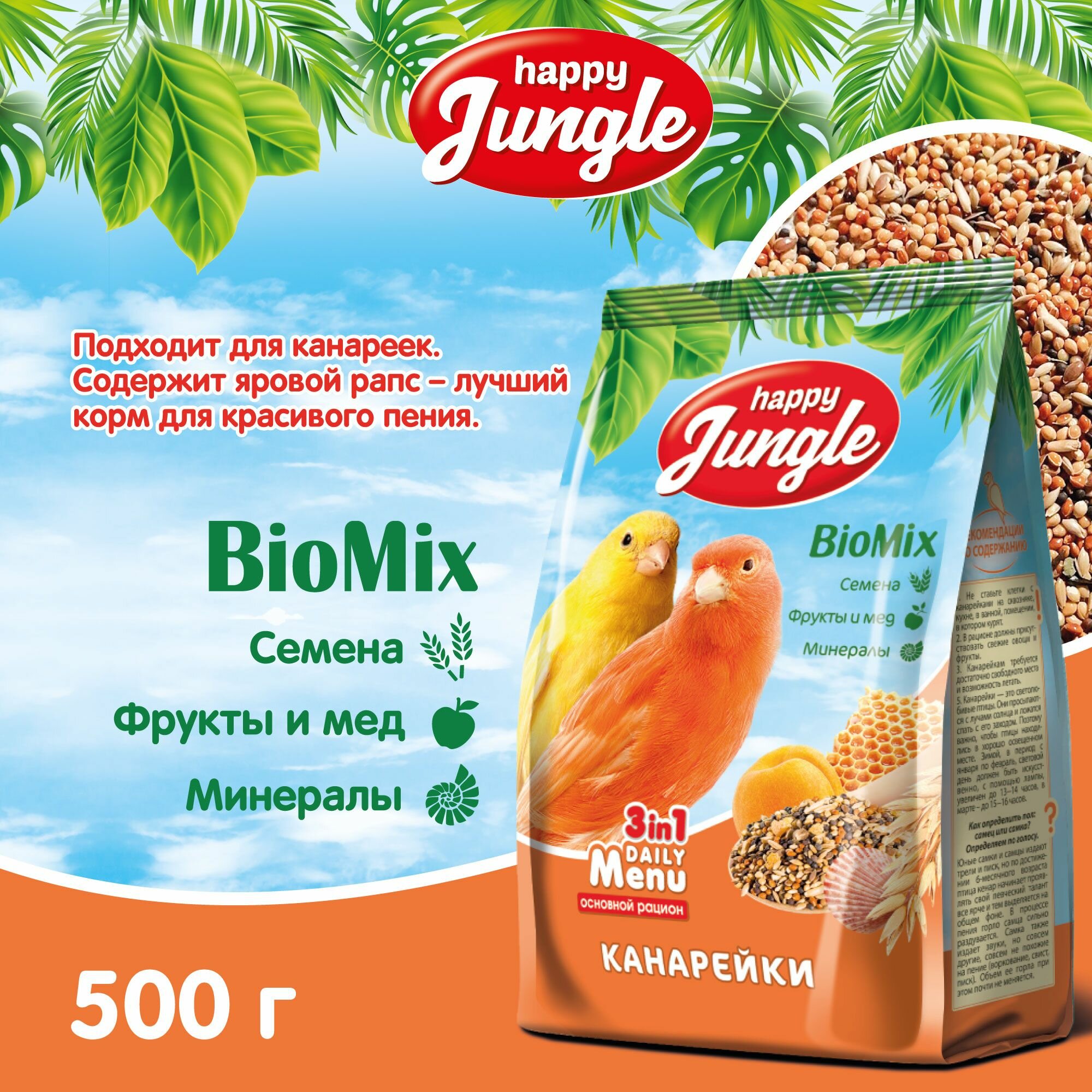 Корм для птиц сухой Happy Jungle / Хэппи Джангл BioMix Daily Menu основной рацион для канареек из проса и овса 500г / зерновая смесь