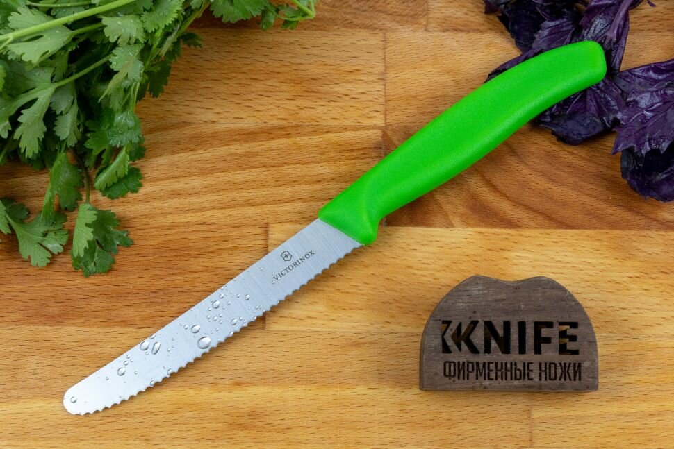 Нож для томатов Victorinox SwissClassic, лезвие 11 см с серейторной заточкой, зелёный .