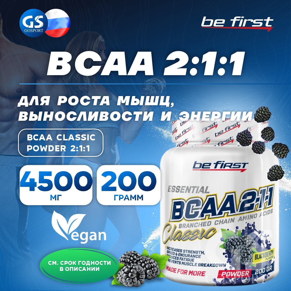 BeFirst, BCAA 2:1:1 Classic Powder (450 г) (ежевика)