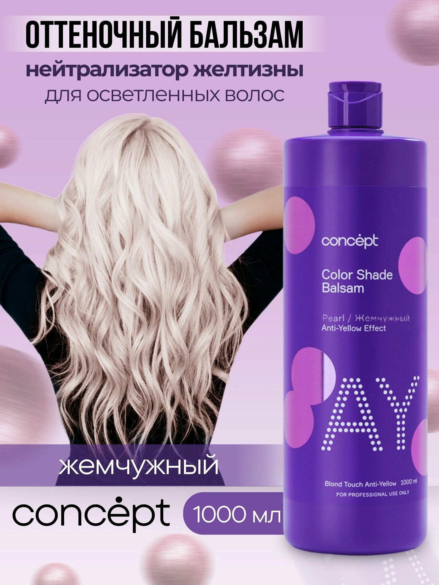 Concept, Оттеночный бальзам жемчужный блонд ANTI-YELLOW, 1000 мл
