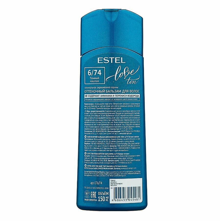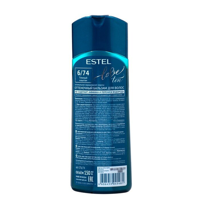 ESTEL, LOVE TON, Оттеночный бальзам №6/74, темный каштан, 150 мл