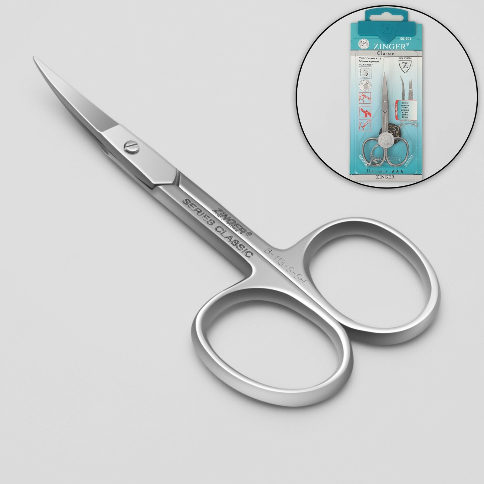 ZINGER Ножницы маникюрные, загнутые, 9 см, на блистере, цвет серебристый, B-113-S-SH
