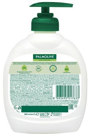 Мыло жидкое 300мл PALMOLIVE натурэль "Олива и увлажняющее молочко", дозатор, ш/к 1763, 8693495017633