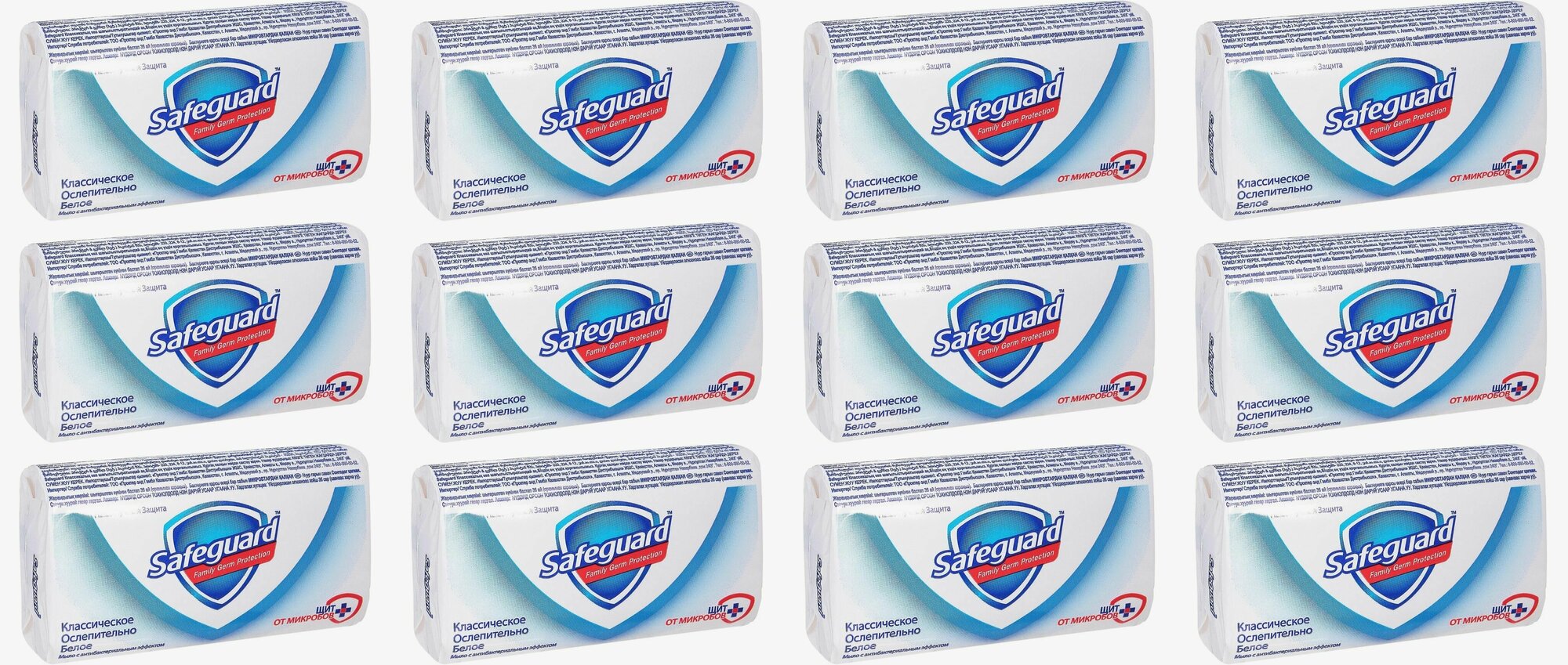 Мыло Safeguard классическое, ослепительно белое, 90 г, 12 уп