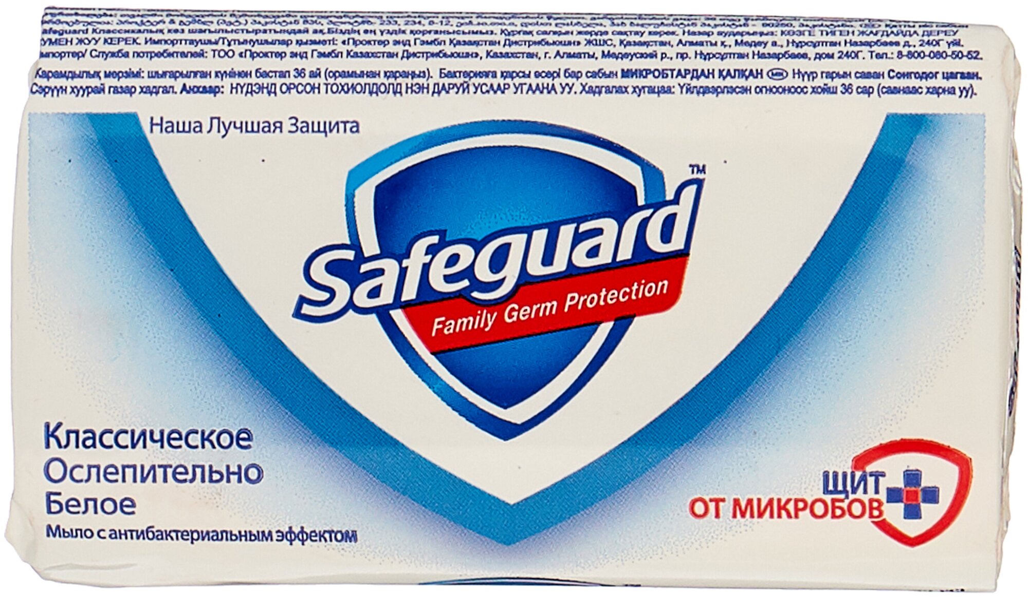 Сейфгард Актив / Safeguard Active - Мыло антибактериальное Классическое Ослепительно Белое, 90 г