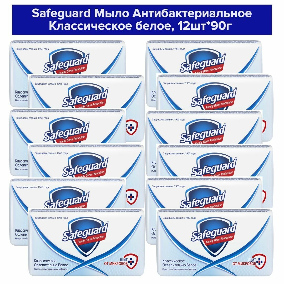 Купить Safeguard Антибактериальное мыло Классическое ослепительно белое 12шт. по 90г.