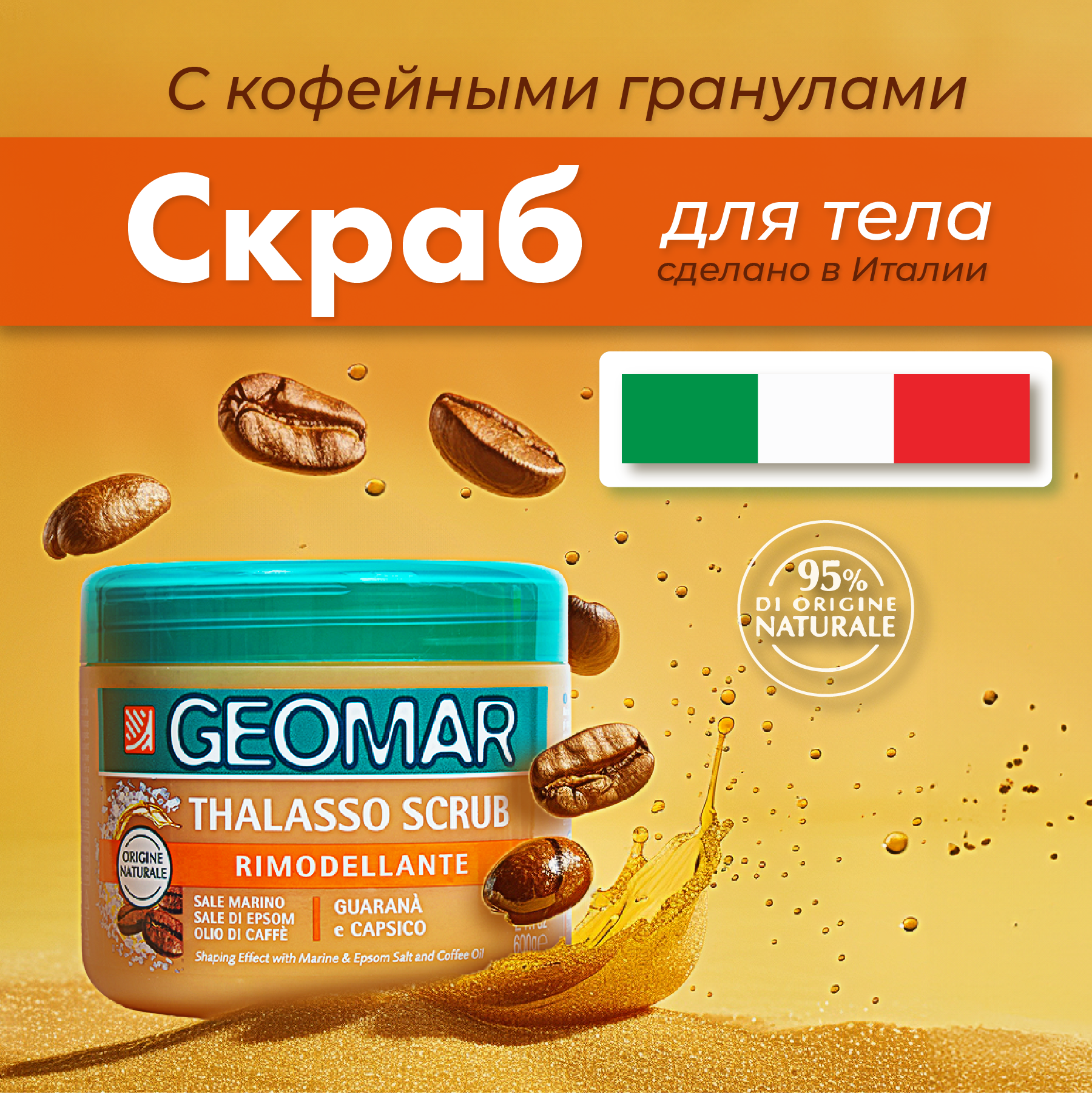 Купить Талассо-скраб моделирующий с гранулами кофе GEOMAR REMODELLING THALASSO SCRUB
