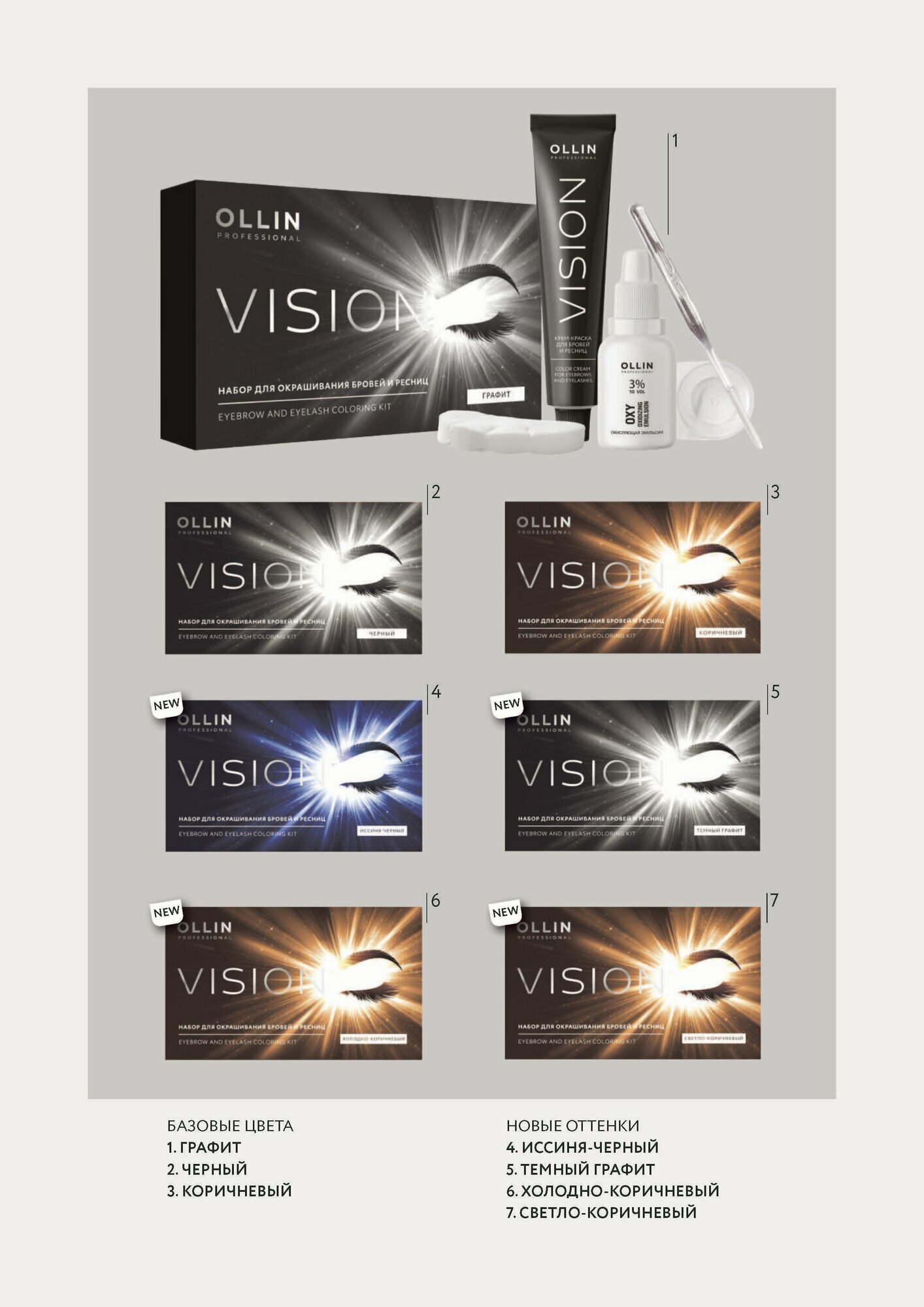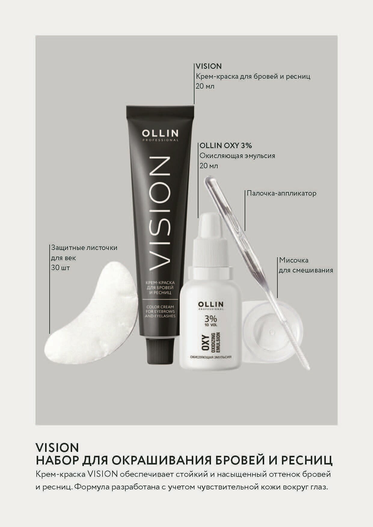 VISION набор для окрашивания бровей и ресниц (Темный графит) OLLIN PROFESSIONAL