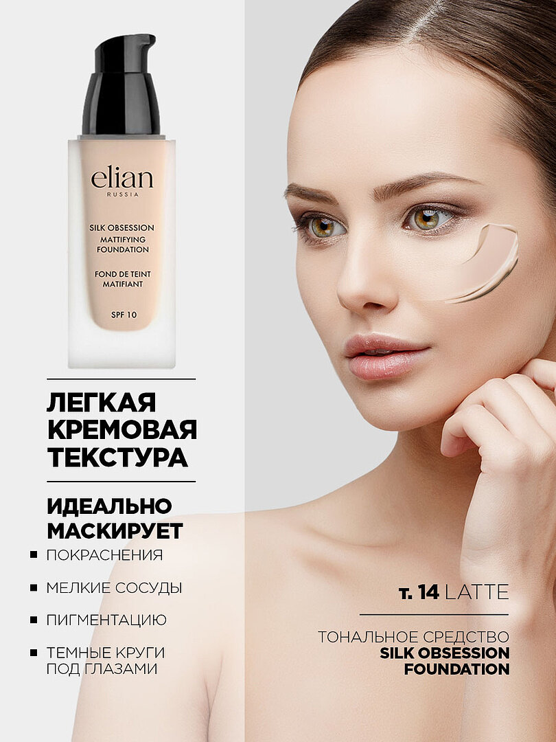 ELIAN RUSSIA Тональный крем для лица Silk Obsession Foundation SPF 10, 35 мл, 14 Latte