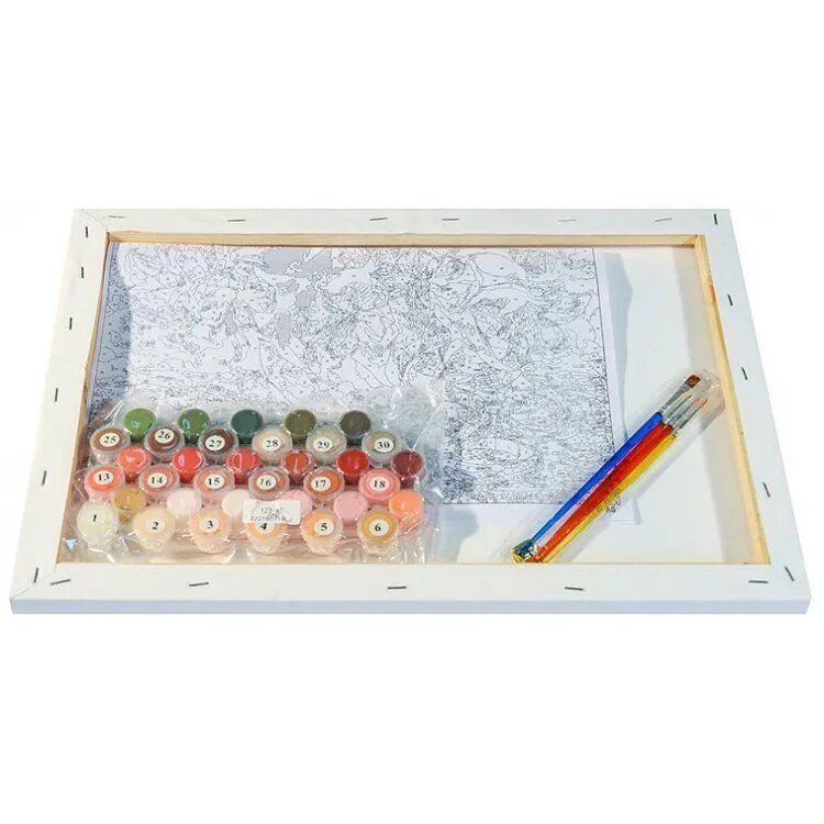 | Минусы: | Плохо натянут снизу, есть небольшая волна, буду надеяться что под краской не будет видно. Акрил густоват в некоторых баночках. |
