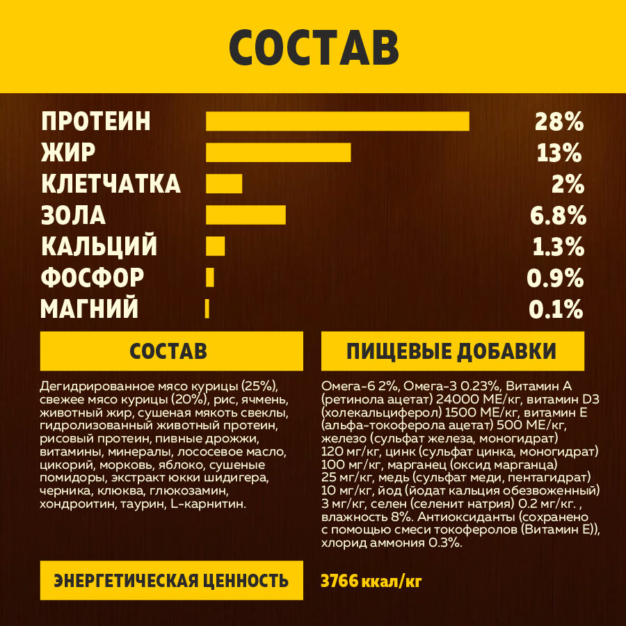 | Возраст животного | взрослые (1-6 лет) |